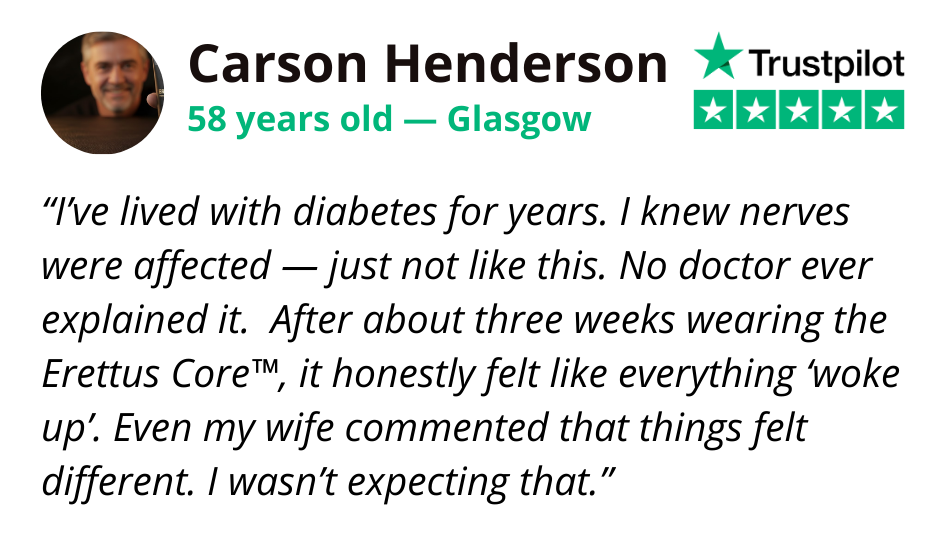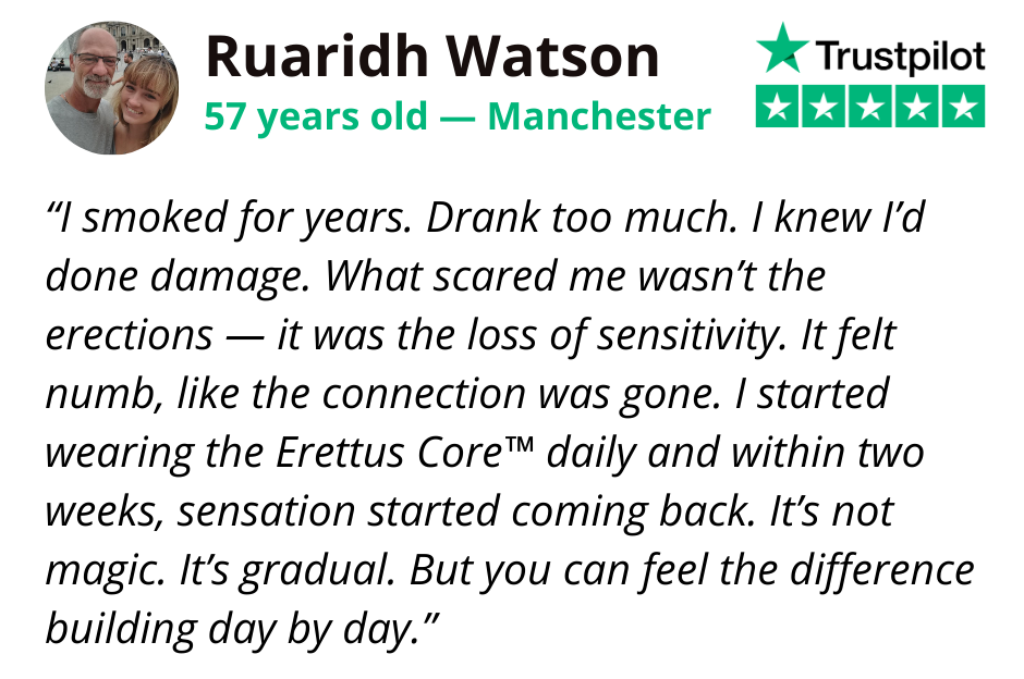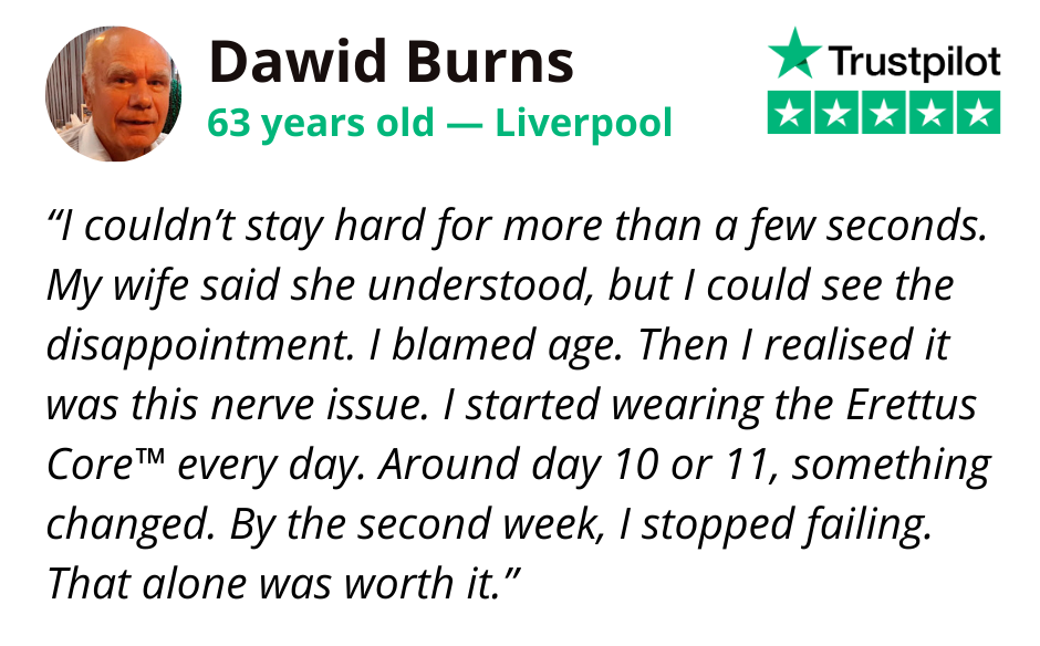 “Consistent neuromuscular stimulation restores nerve responsiveness, sensitivity and erection quality in a way medication simply cannot. The Erettus Core™ gives men a private, reliable solution that works daily — without systemic side effects or dependence on drugs.”